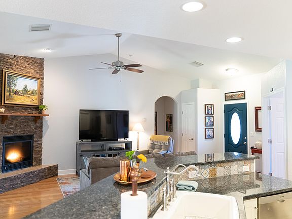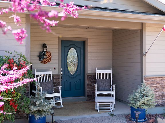 Charming single level 3 bedrooms, den, 2 bathrooms and a 2 car garage in Alpine Village. No HOA .The great room offers a stack stone propane fireplace with a thermostat, vaulted ceilings, large granite breakfast bar with custom tile backsplash, beautiful and inviting kitchen with a barn sink, wainscoting, tile flooring and a pantry. There is an office with double doors. French doors that open to the private backyard that is fenced, landscaped and has turf grass. The garage has epoxied floors and a water softener.