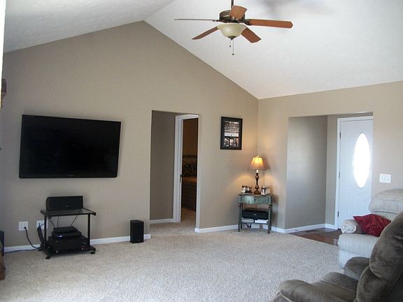 Immaculate and spacious interior will appeal to everyone upon entering this superb ranch-style home! You'll love the open design of the large living and dining areas, as well as the split bedroom/bath floor plan. The trey ceiling in the master bedroom is an added feature to the already amazing master bedroom suite. Two additional bedrooms and a second full bath are located on the opposite end of this lovely home. The kitchen offers ample cabinetry, kitchen appliances and breakfast bar, and is most conveniently located to the laundry and attached garage. Feel at ease, knowing this home has been meticulously cared for, and offers a newer roof, maintenance free exterior and poured, extra deep foundation walls and floor. A covered patio and inset deck are perfect for relaxing in the back yard which features a country atmosphere!