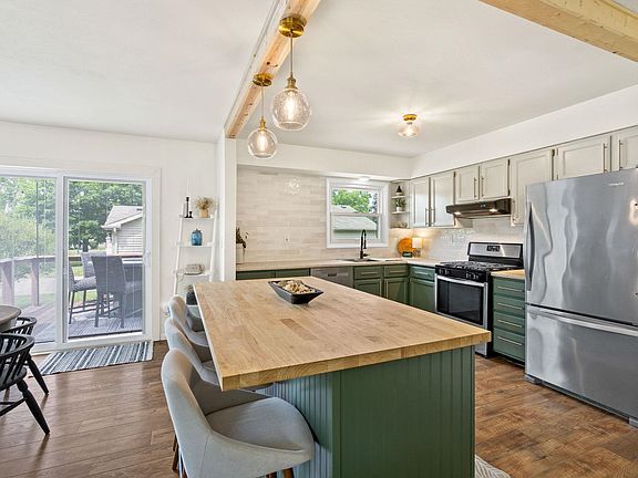 Experience all the cozy vibes + modern style in this beautifully renovated home! Step inside and be welcomed by a large family room, which gives way to the open concept living spaces throughout the home. The spacious kitchen has been completely remodeled, offering stainless steel appliances, contemporary lighting and a sizable kitchen island with an inviting breakfast bar. A charming dining room sits just on the other side of the kitchen, perfect for gatherings, and the walk-in pantry is conveniently located just around the corner for any additional storage needs. Three bedrooms can be found on the main level, as well as a full, remodeled bathroom, featuring a new shower/tub combination, large linen closet and luxury vinyl plank flooring. There is an additional half bathroom just down the hallway, as well as a sizable laundry room. This home offers durable and attractive luxury vinyl plank flooring throughout. An attached 1-car garage complements the home, and comes with a new garage door as of 2023. The outdoor living space is a backyard oasis, featuring an expansive back deck with plenty of yard space and a cozy fire pit for relaxing evenings. This home can be found within walking distance to Syracuse Lake, Lakeside Park, and several shops and restaurants in Syracuse!