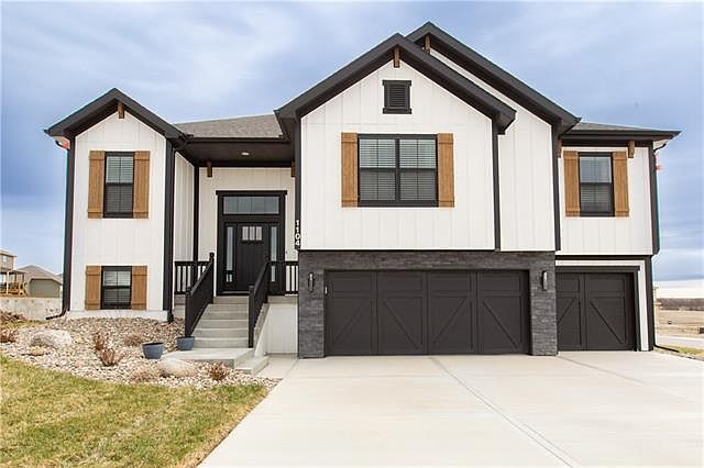 Wow! This gorgeous former model home is finally for sale! 4 large bedrooms with 3 full baths.  Open and bright main level with a stunning kitchen.  Center island, stainless steel appliance, gas stove, BIG pantry with frosted glass door. Living room with fireplace and lvp flooring.  The master suite has a cross beam ceiling, a barn door to the luxury bathroom.  2 additional bedrooms with walk-in closets on the main level.  Finished walkout lower level with a stunning feature wall in the rec room an additional bedroom and full bath.  All this plus a storage room and 3 car garage.  Covered deck and patio.