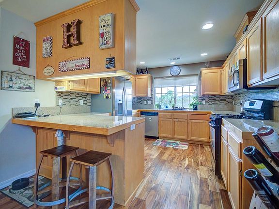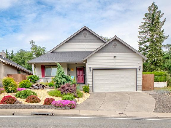 This single-level 3-bedroom/2-bathroom home is adorned with incredible finishes throughout including beautiful hardwood floors that flow under vaulted ceilings and past a lovely two-sided fireplace. With it's full-height backsplash, granite tile counters, stainless appliances and moutain views, the kitchen provides the perfect way to start a morning. Both guest bedrooms are large and one includes a magnificent built-in murphy bed allowing the room to double as an office by day and bedroom by night. The spacious Master is nicely complimented by the large-walk-in close and dual vanity ensuite. The fully-fenced backyard is perfectly landscaped and includes both a covered patio and gazebo creating an ideal space for entertaining. Moments from downtown, schedule a tour of this Grants Pass gem before it's gone!