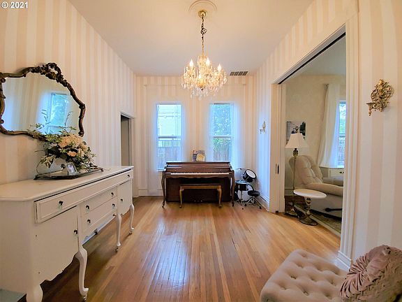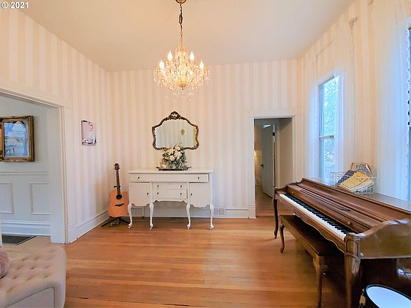 Charm abounds in this beautiful Victorian style home! Love the amazing, remodeled kitchen featuring large center island with build in range, marble countertops and a lot of storage, hardwood floors, chandeliers & cozy front porch! Outside the back yard is private with a storage shed & alley access. Don't miss out on a beautiful piece of La Grande's history!