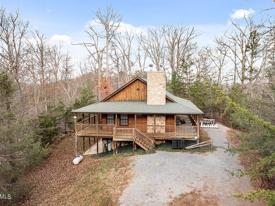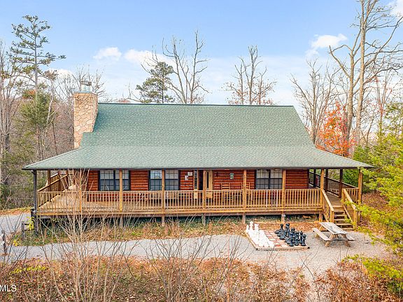 PRICED TO SELL! INCOME PRODUCING 3BR/2.5 BATH CABIN WITH GAMEROOM/THEATRE ROOM SOLD FULLY FURNISHED WITH BREATHTAKING MOUNTAIN VIEWS IN GATLINBURG, TN! GROSS INCOME FOR 2021 WAS $120K! Interior features include open floorplan with vaulted ceilings, hardwood floors, custom log furniture, tongue and groove walls and ceilings, recessed lighting, and a nice open floorplan. Living room with stone accented gas fireplace and a sleeper sofa. Spacious kitchen with plenty of cabinet space, solid wood cabinets, stainless appliances, and an island with additional seating. Eat in dining area with seating for 10 and french doors leading to the covered back deck with bubbling hot tub. Master Suite on the main level with custom log bed, en suite bathroom with jet tub for soaking, tile showers, and a shower with glass door. Huge lower level with a fully equipped gameroom with with a multi arcade, golden tee, and two race car games. Also, you will find a movie area setup with theatre seating for entertainment, and stone accented walls with electric fireplace. The second and third bedrooms are also on the lower level and both have french doors leading to the oversized lower level patio with plenty of room to add additional seating, bed swings, etc. Lower level full bathroom has a double vanity sink and tub/shower combo. Walk-in laundry room on main level. Plenty of possibilities to maximize ROI. Enjoy the covered wrap around deck that wraps around the entire cabin! So much covered area to utilize! Nice private lot with plenty of parking area for multiple vehicles, and also lots of outdoor space with an outdoor seating area, picnic area with park grill, and an adult size chess game too! The views from your swing or rocking chairs from the front porch are breathtaking! Serene and peaceful setting. Convenient location to Pigeon Forge or Gatlinburg. Must see!