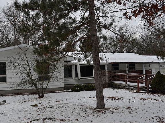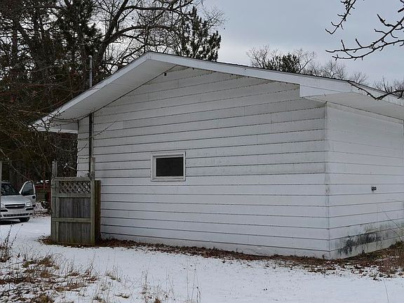 Exterior Features:Aluminum siding, block foundation, windows are intact, has soffits, no eaves present, front covered porch with handicap ramp present, shingled roof which is snow covered, dirt driveway. One out building present. Condenser unit on outside of home. One car attached garage. Home is in the country.Interior Features:Living room with fire place, family room present. Kitchen with cupboards in good condition, vinyl flooring in kitchen in good condition. Dishwasher and sink present. Basement with furnace, water softener, water heater, fire place present. Replace all flooring except kitchen flooring. Home is in fair condition.