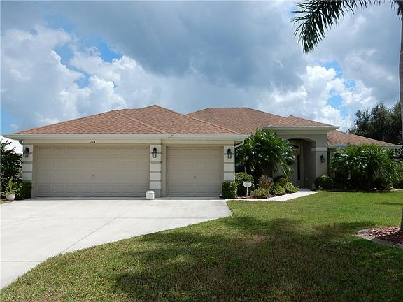 Looking for a Beautifully Well Kept 4 Bedroom 3 Bath 3 Car Garage Home on an over-sized lot in the ever popular Deep Creek Area? This is the one and so much more. From the moment you enter from the front door to the time you relax on the large lanai in back you will be impressed with this home. The high 10 FT ceilings give this large home an ever bigger feel! The larger kitchen has plenty of cabinet and counter space and comes with real wood cabinets and stainless steel appliances. Split bedroom plan with the 4th bedroom also being separated. Also included is a water softener and reverse osmosis filtration system in the kitchen. Easy to use Accordion Hurricane Shutters all around for added safety. City water and sewer, but there is also a 320 FT well for your irrigation system and beautiful landscaping. This is a quality built Adams Home that was built in 2013, so it's better than new because it is ready for you NOW! The windows are low E and will save you $$. Also not in a flood zone so no worries there! This is a great neighborhood in a fantastic location close to I-75 or shopping and so much more. Call for your appointment and you will not be disappointed! Don't Delay, Call Today.