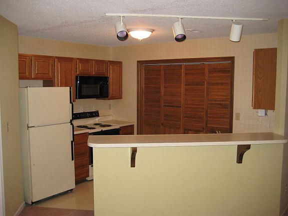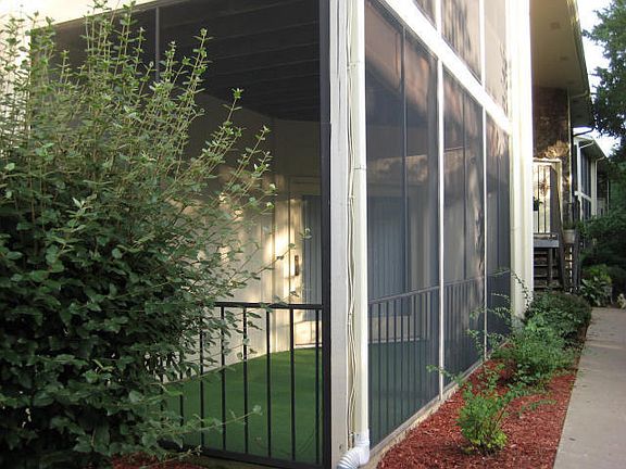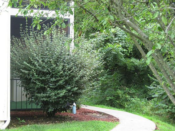 Ground floor unit that backs to woods, screened-in porch, walk-in closets, wood burning fireplace, excellent location, very private.