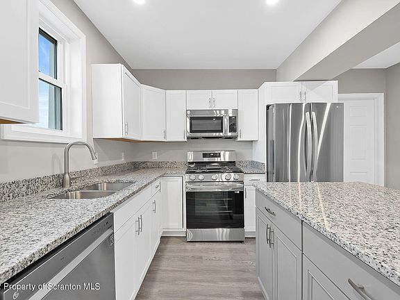 Welcome home Dunmore Bucks! We've got a fully, newly remodeled 3 bedroom, 3 bathroom beauty for you to check out! A new roof and siding gets things going all the way to the brand new natural gas forced air heating system with Central Air! The primary bedroom is on the first floor with its own 3/4 bathroom, walk-in closet, and exit to the exterior. A tasteful, new kitchen with new appliances is wearing new cabinets and granite countertops and has an open floor plan to the living room that also has another 3/4 bathroom. The laundry room is on the first floor so you don't have to drag the baskets down into the basement. Upstairs, you'll find the other two newly carpeted bedrooms with the third full bathroom in the hallway separating them. The backyard is spacious with alley access to a parking pad and plenty of room to add a garage. Finishing off the home is the new front porch to take it all in. Check it out today!, Baths: 1 Bath Lev 1,Full Bath - Master, Beds: Mstr 1st,2+ Bed 2nd, SqFt Fin - Main: 820.00, SqFt Fin - 3rd: 0.00, Tax Information: Available, SqFt Fin - 2nd: 484.00