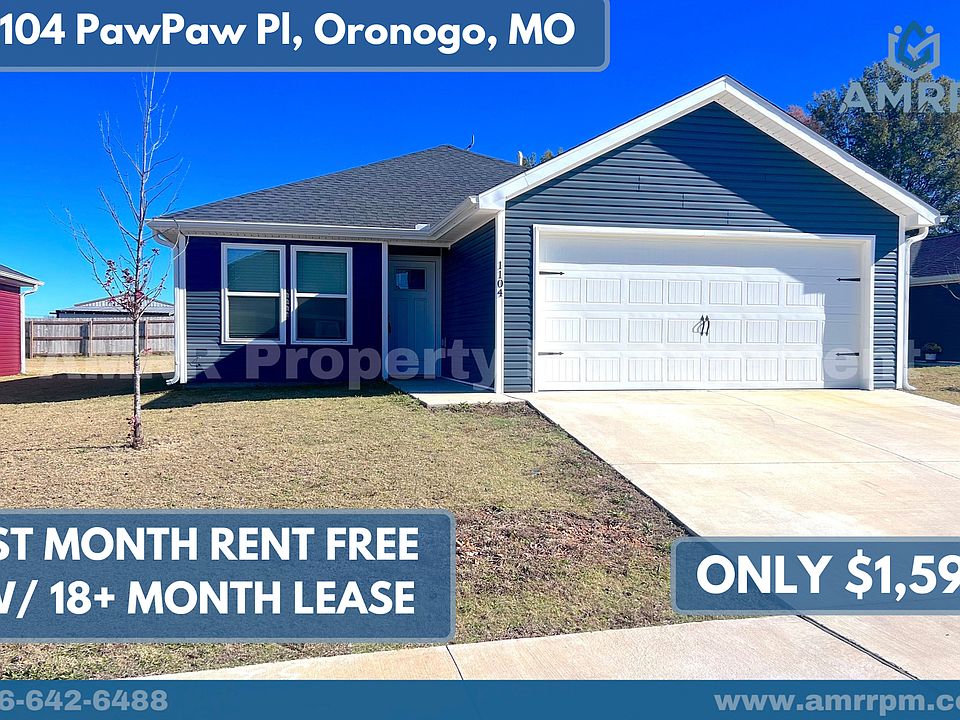 1 month free for 18 month lease or 1/2 month free for 12 month lease Welcome to your new home with AMRR Property Management, featuring 1,200 square feet of living space, 3 bedrooms, 2 baths, and a 2 car garage. This gorgeous home is located in Oronogo, Missouri, and it has everything you need a rental. The kitchen features a stove, microwave, dishwasher, custom cabinets, and vinyl flooring that extends throughout the home, which means NO carpet whatsoever. The backyard includes a relaxing covered patio and a spacious grass backyard. Length of lease can be between 12 and 24 months. Utilities are ALWAYS the responsibility of the tenant, unless otherwise advertised. Tenants are responsible for all lawn care and maintenance during tenancy, unless otherwise advertised. Security deposits are required for most properties, but we offer various deposit amounts and payment options, which are determined during the application process. Application fees are generally $45 but few can waive the application fee if an application is filled out within 24 hours after you complete a scheduled showing with one of our leasing agents. Normally, only 2 pets are allowed per property and we charge a one-time pet fee of $250 per pet, with no breed restrictions or weight limits, unless otherwise advertised. No smoking of any kind is allowed inside the property or garage.