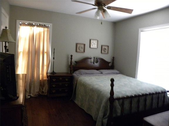 2 bed, 1 bath, Kitchen with center island, Dining room going into living room area. Vinyl flooring in kitchen, Real hardwood flooring in living room, dining room, & bedroom. Laminate flooring in second bedroom. One car garage, & large fenced back yard.