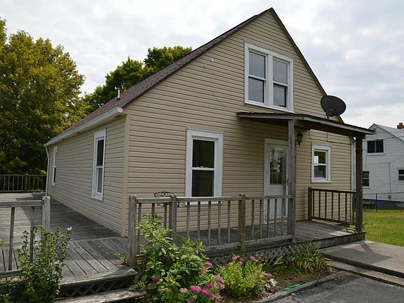 This updated 1.5 story home on large .91 acre lot features a heatpump, replacement windows, and a modern bathroom. This home caters to outdoor living, with covered front and back porches and a large deck. Full unfinished basement. Detached garage and garden space.