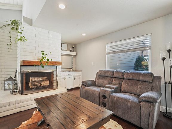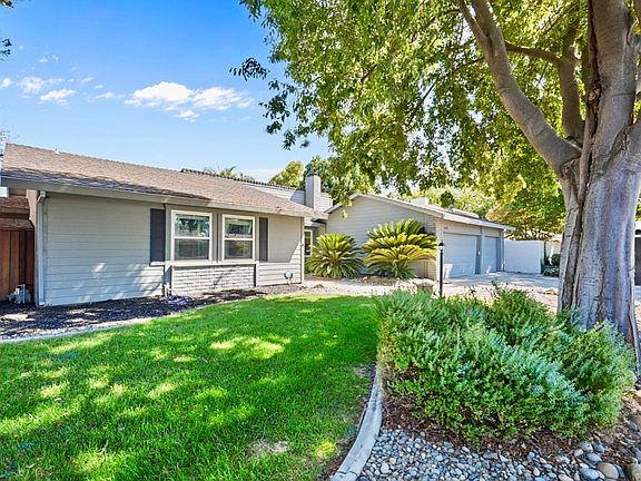 Stunning 3-bedroom, 2-bath home ideally located just a short walk from the highly desirable Lakewood Elementary School. This beautifully maintained property boasts an airy, open-concept layout with soaring vaulted ceilings in the great room, dining area, and kitchen. The spacious living room features rich hardwood floors, custom built-ins, and abundant natural light. The charming kitchen offers newer high-end stainless steel appliances, tile countertops, a farmhouse sink, and ample cabinet space. The hall bath showcases designer tilework and a custom walk-in shower. Step outside to an entertainer's dream backyard with a large covered patio wired for dual TVs, stamped and stained concrete, a sparkling PebbleTec pool, above-ground spa, and newer fencing for added privacy. Additional upgrades include dual-pane windows and sliders, a presidential composition roof, and a 3-car garage. A rare gem in one of Modesto's most sought-after neighborhoods!