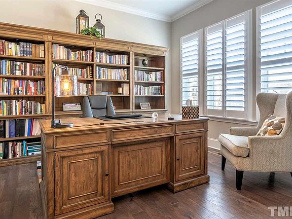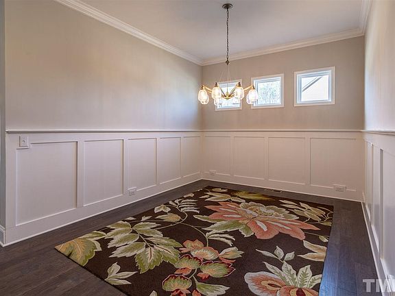 Absolutely STUNNING Home! 3 car Garage & Finished 3rd Flr Bonus. Shows like a Model. Private Office. Formal Dining Rm. DREAM Kitchen w. extended cabs, high end SS appliances, huge center island & open floor plan. 4 graciously sized BRs up, all w. walk-in closets. Master features tremendous vanity space, soaking tub, step in shower w. bench seat & HUGE amazing closet! Vaulted Cov Rear Porch overlooks flat lot ideal for pool or ball games! Just steps to access American Tobacco Trail. Don't miss this one!