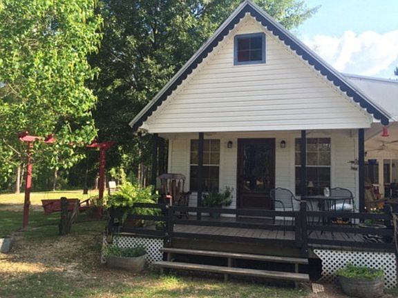 Country Cottage! Very clean inside and out! The porch wraps around one side with an amazing view of the private lake. Features include: hardwood floors, 2 loft areas, vaulted ceilings, claw foot tub, screened porch, gazebo and all the privacy you are looking for! A very unique home on 20 acres. Acreage is awesome with lots of wildlife. Close to Interstate 59... So pretty!