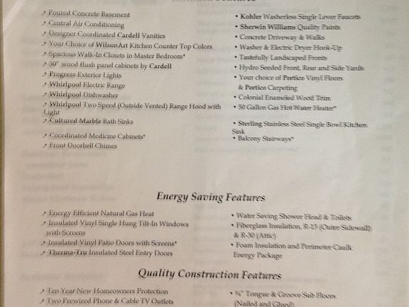 Great neighborhood, great neighbors, 11 years old. The Allister model, by Schaefer Family builders http://www.schaefferhomes.com. Full basement, 2 car garage, family room, breakfast nook, dining room, living room, nice size masterbedroom, 3 bedrooms 2.5 bathrooms, concrete floor in crawl space under the family room, access fromm the heated-A/C basement, patio, covered front porch, in the ground sprinklers, generator hookup, city gas, city water, city sewers. Low gas and elec bills