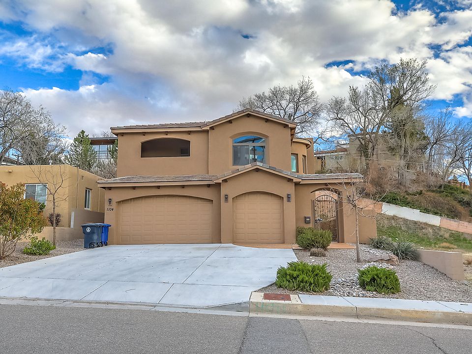 This Tuscan style home is a rare find in the heart of Albuquerque. Built in 2014 this home has all the best features including beautiful wood and tile floors inviting you into the open living space. Gas fireplace, raised ceilings, 3 car garage, large bar and island in the kitchen with granite counters, SS appliances and pantry. Master Suite is downstairs with it's own private laundry area. Upstairs has 3 more rooms, additional loft area with private balcony and views of the Sandias. This home is a short distance to parks, UNM, hospitals and more. Close to freeway access and downtown. Low maintenance landscaping. No PID or HOA. Schedule a showing today.
