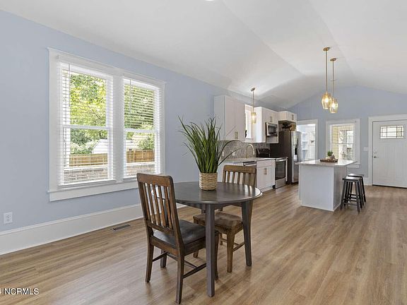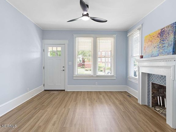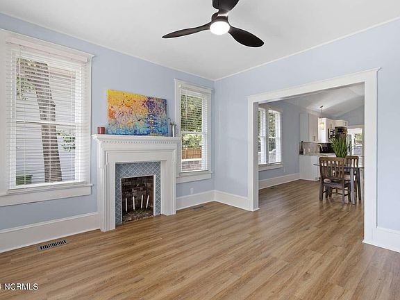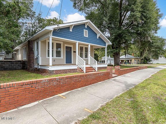 Welcome to your professionally renovated dream home nestled between downtown Wilmington and Greenfield Lake Park and Amphitheater! This unique property offers an over-sized corner lot, off-street parking for 4 cars + boat (very rare find with public boat ramp just down the road), and has a 2nd driveway cut for an accessory dwelling unit (ADU) that is approved by the City of Wilmington (investor friendly). The homes exceptional blend of modern amenities, convenience, and style include: Spacious layout with vaulted ceilings and drop lighting, new kitchen cabinets with soft close doors, island with seating, granite counter-tops with leather finish, walk-in pantry, new stainless appliance package and backsplash. Enjoy your new over-sized bathroom offering comfort and elegance with modern vanity with marble top and soft close drawers, new lighting, sleekly tiled shower and custom storage nook. The exterior of the home offers a large rocking chair covered front porch, covered back porch (perfect for grilling), fire pit, garden beds, and storage shed! Own a 1915 built home while having the peace of mind a new home offers... Renovation includes new HVAC system with assumable warranty, 100% re-wired and newly insulated attic. The home's aesthetic seamlessly blends contemporary design with the charm of Wilmington's historic downtown and offers a Prime Location!!! A short stroll brings you to the popular local spots such as Greenfield Lake Amphitheater, The Harp, Benny's Big Time Pizza, True Blue Restaurant, The Second Glass, Mariposa Tapas, and Bodega. Jump on this home just before Wilmington begins their improvement to the 5th street corridor