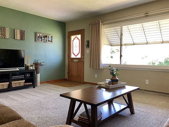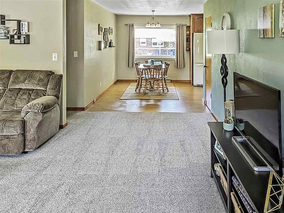 Motivated Seller! Move right on into this well kept brick ranch, with nothing to do but unpack! Large living room with lots of natural light and closet for storage. Living room opens up to the informal dining space and kitchen. Dining room has nice view of the landscaped back yard. Kitchen has plenty of cabinets to hold all of your cooking essentials, extra space for a coffee bar and pantry for additional storage. Main floor features 2 good sized bedrooms and large main bath. Basement is partially finished with a rec space on one side and additional storage on the other. Backyard is nicely landscaped and features a patio for entertaining and a shed for extra storage. Additional features: extra slab for parking, smart thermostat, irrigation system, painted basement floor, main floor laundry hook up in 2nd bedroom closet, and all appliances stay. Bring an offer!