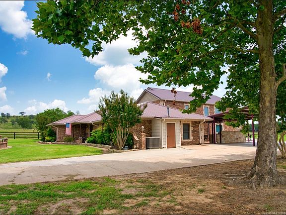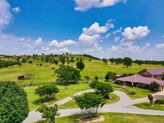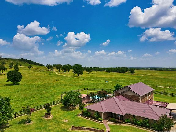 The G4C Ranch located just south of McAlester, Oklahoma. Near town, the location is excellent, providing country living with city amenities. The home boasts approximately 4,200 square feet of total living space, on 156 acres. A decorative entry gate opens the way leading up the tree-lined driveway to the ranch-style brick home. The ranch home was built in 1969 with a complete head to toe remodel, along with the addition of 4 bedrooms, 2 baths, and a sun-filled family living area in 2008.