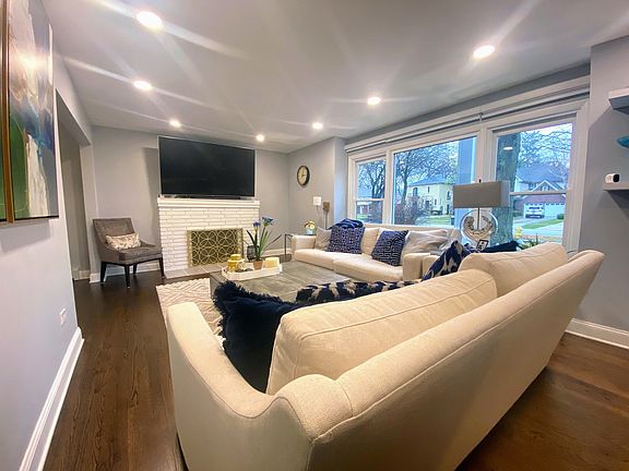 Welcome home to this light filled, newly renovated colonial in the Southwest Woods of Park Ridge! The first floor of this inviting home has a living room with fireplace that leads into the dining room and kitchen with stainless steel appliances, farmhouse sink, quartz counters, marble backsplash and eating area. There is also a powder room off the kitchen. Hardwood floors throughout. The upstairs features a master bedroom with walk-in closet and master bathroom. The full finished basement has a spacious newly carpeted family room with a wood-burning fireplace. Brand new mechanicals include multi-zone boiler system for radiant heat, central A/C and hard-wired smoke detectors. The backyard has a deck and 2 car detached garage with side driveway.