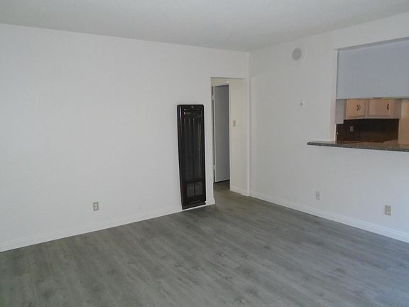 This home features grey laminate wood flooring, granite counter-tops, newly painted, recently remodeled kitchen cabinet and sink. Wall A/C in Living Room.