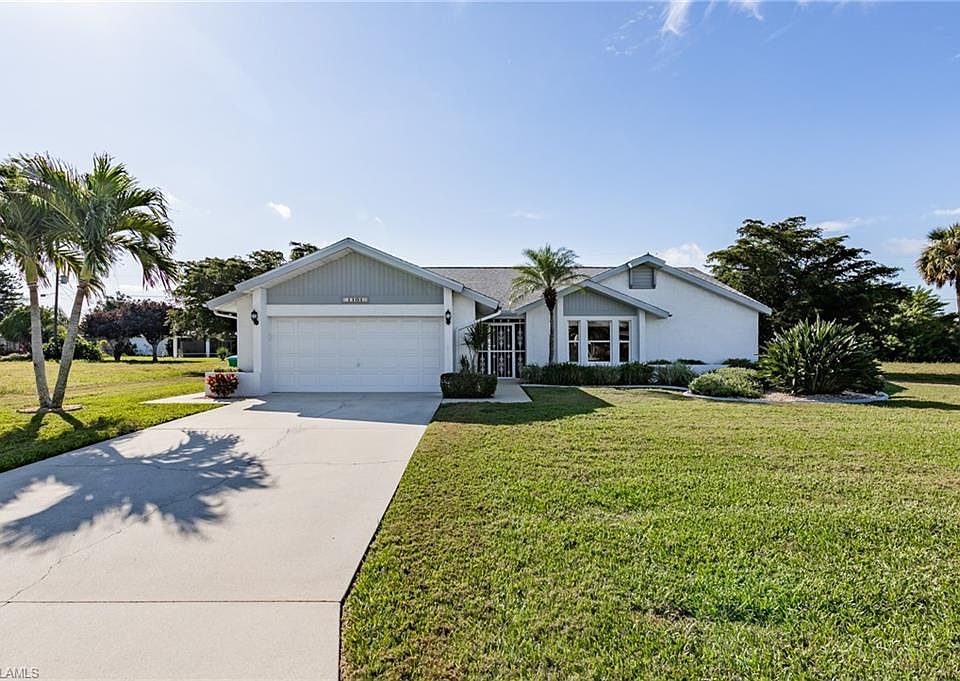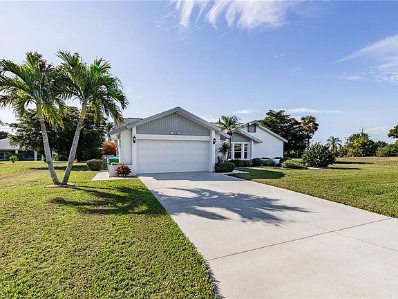 Looking for an affordable CLEAN and WELL-MAINTAINED home that isn't your typical 'cookie cutter' floor plan? This is it! Great curb appeal with lovely landscaping, ACROSS from beautiful GULF ACCESS homes and vacant lots on both sides. DOUBLE DOOR screened entry leads to a spacious great room with CATHEDRAL CEILINGS and TWO SETS OF POCKET SLIDERS. The galley kitchen has white cabinets, newer stainless steel appliances, a large pantry, and a bright BREAKFAST NOOK with a view! Split floor plan including laminate and tile flooring throughout. Large guest POOL BATH. The third guest room offers a pocket slider door and can also be used as a den. The private master suite has sliders to the screened lanai, a large walk-in closet, DUAL SINKS and a combo shower/ JETTED TUB. Indoor laundry room with cabinets, laundry tub, and a newer washer & dryer. 2 CAR GARAGE. Relax on your inviting SCREENED LANAI overlooking the manicured lawn with SOUTHERN EXPOSURE. Plenty of ROOM FOR A POOL. FRESHLY PAINTED, NOT IN A FLOOD ZONE, and ASSESSMENTS PAID. You won't find another home in this condition at this price, so don't delay!