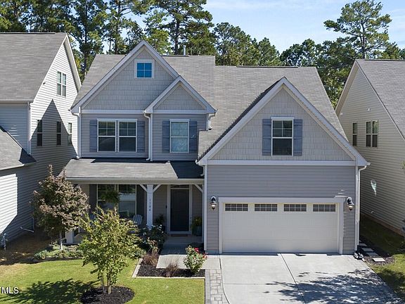 High quality finishes include upgraded Craftsman style trim, cove crown molding, 3-panel Craftsman style doors and 3 1/4'' engineered hardwood floors throughout the main living areas. The kitchen is a chef's dream, featuring staggered height shaker panel cabinets, tile backsplash, granite countertops, recessed & pendant lighting, a large center island with barstool seating, and GE SS appliances, including a gas range/oven. Upstairs, you'll find the spacious owner's retreat featuring, cove molding and barn door entry to the en-suite bath with 12''x12'' tile floors, an expansive dual vanity with make-up area, garden tub & separate shower with tile surround. The family room adjacent to the kitchen features a gas log fireplace with a slate flush hearth and mantel, framed by a nickel gap shiplap floor to ceiling trim wall. Dual floating shelves flank the fireplace. One of the highlights of this home is the spacious screen porch and it's large paver patio that's illuminated by hanging string lights. The backyard is fully fenced. The yard is sodded and backs onto a tranquil wooded area. Community Amenities in Brightleaf at the Park include: Swim Club with Junior Olympic size pool with dual slides, swimming lanes, kiddie pool, and a zero-entry pool. Lighted tennis courts and miles of serene natural trails perfect for walking, jogging, or biking. The green spaces throughout the community are certified by the Audubon Society for environmentally responsible land planning. Located just minutes from major highways such as I-540 and Highway 70, this home offers easy access to downtown Durham, Research Triangle Park (RTP), and Raleigh, Shopping, dining, and entertainment options are all just a short drive away, making this the perfect home for those who value both convenience and community.