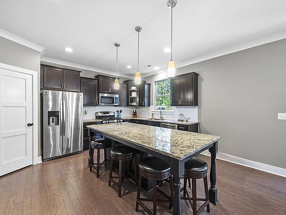 - Breakfast Bar, Ceiling Fan(s), Crown Molding, Double Vanity, Eat-in Kitchen, Entrance Foyer, Granite Counters, Kitchen Island, Open Floorplan, Pantry, Soaking Tub, Walk-In Closet(s), Walk-In Shower, Water Closet