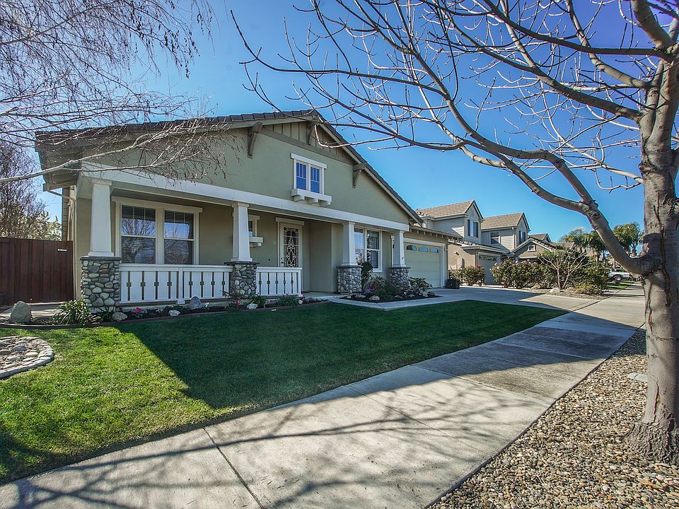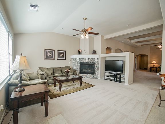 This gorgeous home boasts luxurious amenities and warmth upon arriving. As you enter into this home you are welcomed into a formal dining and living room featuring gorgeous coffered ceilings, ceilings lights/fans, and special alcoves. Desirable features in this home include; upgraded carpet, vaulted ceilings, custom window coverings & neutral paint throughout. In this open kitchen & family room combo, you have the opportunity to still enjoy time with your family while making the necessary meals. Beautiful cabinetry with handles. tile countertops with custom backsplash, double ovens, 5 burner stove top with hood, center island and breakfast bar seating! The eat-in kitchen area provides you access to the covered courtyard patio! This tranquil living room offers an alluring stone gas-burning fireplace and special alcoves for your very own entertainment center. Have you ever dreamed of having your own backyard oasis that offers lush and beautiful landscaping? This backyard offers tranq...