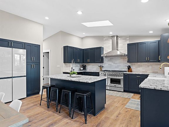 Step into a large, open welcoming area with a bench and closet on one side and an office, set up as a poker and board game room, on the other. This flows seamlessly into a spacious open-concept den (with a built-in reading nook), dining area, wet bar, and gourmet kitchen, where the entire exterior wall facing the lake is made almost completely of glass from top to bottom with skylights throughout, offering excellent lake views and natural light from inside the house and connecting to porches for even more stunning vistas. The kitchen boasts an eight-burner gas stove, double oven, large island, and ample storage. On the way to the converted two-car garage (now a full arcade with pool table, air hockey, foosball, claw machine, and classic arcade games), find a beautifully refinished half bath, a washer/dryer area, and a large linen closet. The huge primary suite features a king-size bed, private balcony, a large walk-in closet, and a very large and modern bathroom with a beautiful glass shower, stand-alone soaker tub, double vanity, and separate toilet room, all with soaring vaulted ceilings. Two additional bedrooms, a half bath, a very large screened porch with a swing, and a very large open porch complete the upstairs, all featuring vaulted ceilings for a spacious, airy feel, accessible via a new deck with a fun slide to the lower level.