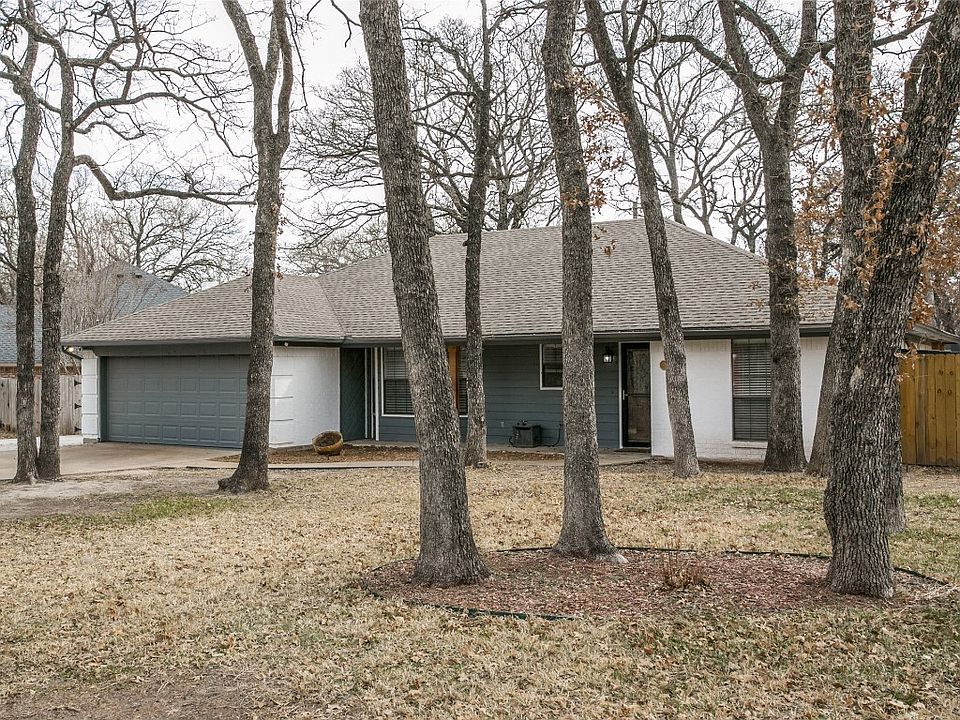 $10,000 TO BUYERS *CLOSING COST* BEING OFFERED. Freshly updated exterior home in a well established neighborhood. 3car driveway that extends for RV or boat parking- Free boat launch 2.5 miles away at Shady Grove. Kitchen has an open floor plan into the living and dining room. Natural light shines through the living room which features a built in book shelf and a beautiful wood burning fireplace. Large primary bedroom. Primary bathroom has two vanities and separate closet space. Split secondary bedrooms. Backyard offers plenty of entertaining space, a covered patio, with a deck. Also includes a 10x16 storage building and a chicken coop. Easy access to restaurants and highways. Ash Creek park located right across from the subdivision offers volleyball-basketball courts, soccer-baseball fields, 18 hole disc course, and playgrounds. Fort Worth Nature Center and Refuge is right down the street and provides trails, fishing, parks, and more.
