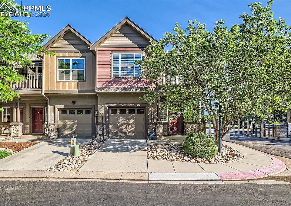 Nestled on the westside of Colorado Springs, this well-cared-for 2-story townhome in the gated Creekview Townhouse community shows like new! This 3 bed, 2.5 bath home offers unobstructed mountain views from nearly every window and is perfectly located near many local amenities. The main level features easy access from the finished attached garage to a powder room and open-concept living area, complete with a gas fireplace and lighted ceiling fan. The recently remodeled kitchen boasts new cabinetry, stainless steel appliances, a stone and tile backsplash, and ample counter space, while the dining area provides access to a walk-out patio. Newer carpet flows throughout the main level and continues upstairs, where you’ll find all three bedrooms, additional bathrooms, a laundry area, and a sitting area. The primary bedroom includes an adjoining walk-in closet, a full bathroom with a stand-alone shower and double sink vanity, and access to a shaded walk-out balcony. The two additional bedrooms are located down the hall from the primary for added privacy, with the second full bath and laundry space conveniently close to all bedrooms. Upgrades within the last three years include a new roof, newly installed gutters and downspouts, a recently replaced hot water heater, modern appliances in the updated kitchen, and a security system. Enjoy walking distance to nearby shops like ACE Hardware, Starbucks, restaurants, and Safeway, and take advantage of being steps away from the Sinton Trail, which leads to Garden of the Gods Park and connects to the Fountain Creek Trail.