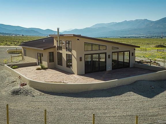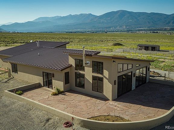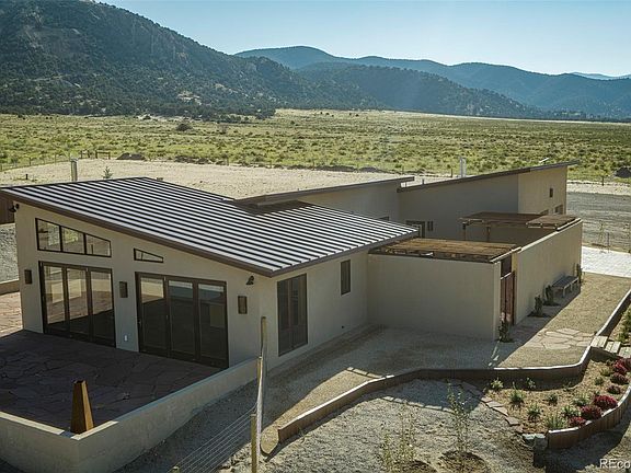 This modern, open-concept home, built in 2019, spans 1,748sf, featuring 2 bedrooms, 2 bathrooms, a modern kitchen with a clean and functional design and a large island, an oversized 2 car garage, a laundry room with a utility sink, and amazing outdoor spaces. Large windows and tri-fold glass patio doors open to panoramic views of the surrounding mountains and create an amazing indoor/outdoor experience when opened, effectively bringing the outdoors in. Polished concrete floors provide a clean, modern touch. A freestanding pellet stove adds to the comfortable feel of the home and supplements the in-floor radiant heat. Outside living space includes a large wraparound patio to enjoy the open space and mountain views and an enclosed south-side patio with pergolas providing shade and privacy. The 40 acre property is livestock ready with a two stall loafing shed with large tack room and hay storage, hydrant and automatic waterer, turnout stalls, a large 300ft x 500ft paddock, and an out-door arena (approximately 100ft x 263 ft), all constructed of steel posts and piping. A domestic well allows for watering livestock and up to an acre of lawn and garden. Bordered on two sides by BLM land the location offers plenty of open space, quiet, star-filled night skies, and direct access to public land for endless hiking, biking, or horseback riding. Downtown Salida, Colorado's largest National Historic District, is less than 6 miles away for shopping, dining, medical services, and other amenities. Arkansas River access is five miles from the property and Monarch Mountain Ski Area is only 26 miles away. There are minor covenants/deed restrictions but there is no home owner's association of dues associated with the property.