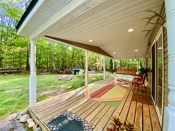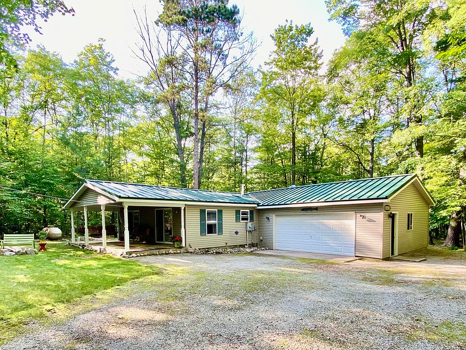 Private setting adjacent to thousands of acres of state forest with high-speed internet. This move-in-ready 3 bedroom, 2 full bath home features an open concept, with an updated kitchen, vaulted ceilings, large living room. Door wall leads to a large 10' x 26' front porch offering plenty of room for family & friends. The insulated three-season sunroom offers a view of the private backyard backing up to the state land. Large 24' x 24' attached garage, standing seam metal roof and a 12' x 16' shed with concrete floor. Home offers access to Guthrie Lakes Amenities -- access to Guthrie & Section 1 lakes, sandy beach, clubhouse with indoor/outdoor pool, game rooms & gathering areas.