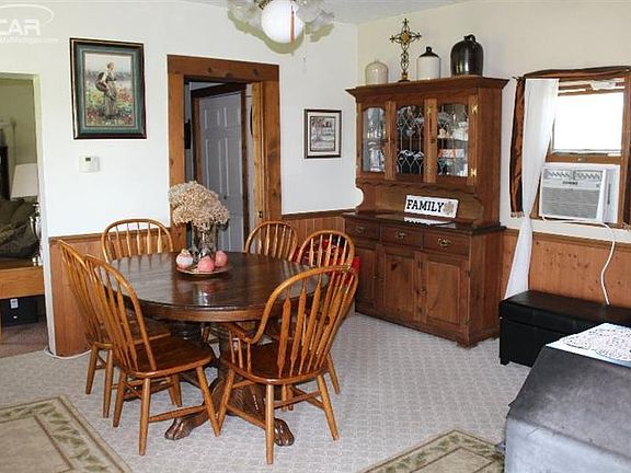 Charming remodeled farmhouse on private country acre. Main floor master bedroom. Cathedral ceiling family room with gas fireplace. Dining room with Aurora wood stove. All new white Merillat island kitchen with granite & stainless appliances included. 2 car attached & 2 car detached garages. Extra walls blown insulation. Linden, Swartz Creek, & Byron schools are close proximity. Newer windows, vinyl siding, septic (20000, well pump, and 2014 roof with 35 year Arch shingles.