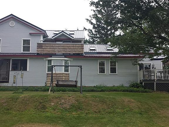 Remodeled Country Farmette! Colonial w/ 4 Bdrm, 3 new tile Baths, Barn and Outbldg, 6.7 ac. Open flr plan has tremendous entertaining possibilities w/kit, din, & fam rms all open w/flr to ceiling stone fireplace to showcase the look. Open beams, nat wd flrs. Modern kit w/island-built in cooktop & dbl oven, open to 2 tiered deck for parties & incredible view! New bath w/jet tub & tile suround. Choice of 2 Mst. bdrms! down (could also be used for inlaw w/separate entrance & drive:. Has 9x9 walk in closet & amazing tile bath. Or up: 21x14, cathdrl ceiling, skylights, fan, sliders to 10x14 balcny w/view! 2 addt'l lg. bdrms. up. New tile bath up. 2 barns w fenced pasture. 2 Ponds & stream. This home has been remade top to bottom! Incredible! Poss small farm. Outstanding view.