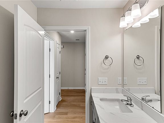 The Holly plan by Smith Family Homes is under construction in Woodland Cove with an estimated completion of October 2025. Located on lot 40, this single-story plan has 1,495 sq ft with an open concept kitchen, dining, and living space. The primary suite offers dual sinks, and walk-in closet. The kitchen has granite countertops, stainless-steel appliances (dishwasher, microwave, and oven), and LVP flooring throughout the home included. Model home images shown, to be similar but not identical.