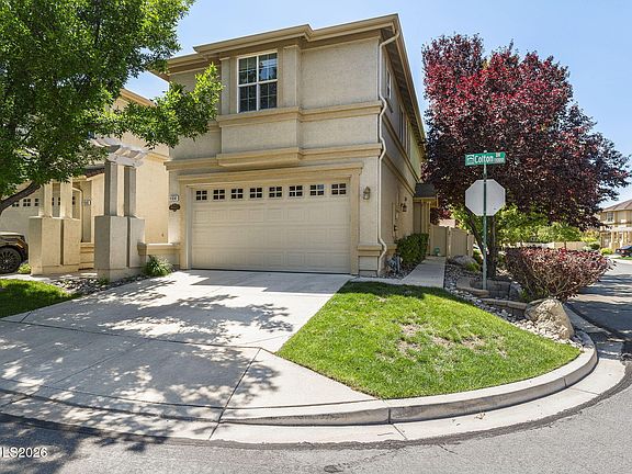 Welcome to this spacious south Reno townhome offering 3 bedrooms, 2.5 baths, and 1,834 sq. ft. of comfortable living space! The open-concept floor plan creates an inviting flow between the living, dining, and kitchen areas—perfect for everyday living and entertaining. The kitchen features granite countertops, a breakfast bar, pantry, and a brand-new dishwasher. Upstairs you'll find generously sized bedrooms, including an oversized primary suite with an attached office/workout area. The primary bath offers dual sinks, a shower stall, soaking tub, and a walk-in closet. A large laundry room with built-in cabinets adds convenience and extra storage. Situated on a desirable corner lot, the private backyard is designed for relaxation and gatherings with a paver patio, fire pit, plumbing for a fountain feature, and mature trees and shrubs. Additional highlights include a 2-car garage and close proximity to shopping, dining, and schools. This South Reno gem combines space, functionality, and location—ready to welcome you home!
