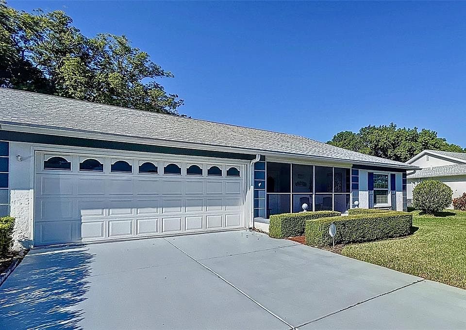 Experience the pinnacle of elegance with this stunning home located in the sought-after 55+ community of Timber Oaks. This exquisite property is a testament to refined taste, boasting 2 bedrooms, 2 bathrooms, and an attached garage, offering over 1,646 sq ft. of luxurious living space. As you step inside through the double doors, you are greeted by a spacious foyer, which sets the tone for the gracious living areas. This impeccably updated home is a rare find, featuring an attached garage, not typically found in a condo. The open concept living room and dining room are accentuated with ceramic tile flooring laid out in an elegant herringbone style. Other features include a stunning built-in bookcase in the large living room and abundant windows that allow natural light to filter in. The kitchen is adorned with Corian countertops, beautiful cabinetry, a large window, eat in area, and a large pantry. The primary suite is a serene sanctuary with 2 closets, and a stunning bathroom featuring Carrera countertops and backsplash with an undermount sink. The shower surround is ocean silver with Carrara trim, and the gorgeous flooring is a mix of marble mosaics and honed Carrara. And the second bathroom features the same exquisite elements ! Additional features of this home include a front screened-in large porch, a new roof (2022), and a new AC (2023) with a 10-year transferable warranty. The backyard space is a park-like setting with sidewalks to take a leisurely stroll while enjoying nature's beauty or take a short walk to this village's pool which is in addition to the clubhouse pool. Residents of the Timber Oaks community will enjoy an array of amenities, including a clubhouse with a large pool overlooking serene Footprint Lake, tennis, shuffleboard, and bocce courts, and a host of monthly events and activities such as sewing, cards, billiards, woodworking, and much more. Close to local amenities such as stores, restaurants, library, and medical centers and is only 15 min away from the Suncoast Parkway making an easy commute to the Tampa Bay area and Tampa International Airport. This is a home that exudes sophistication and offers an unparalleled living experience. Truly move in ready! Call for your private tour of this amazing home today!