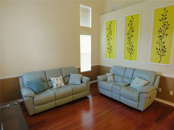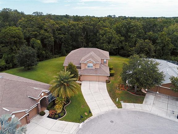 This is THE ONE! Gorgeous 5 Bedroom, 3 Bath home located on a Cul-de-sac in Resort Like Community of Waters Edge. If you want to live in a Neighborhood but still want large property and privacy this is the perfect home for you. This home boasts over 3100SF and has everything you could want including extra long driveway, large yard in back and on sides and Conservation behind it. Kitchen features 42" Maple cabinets with Crown Molding, Corian Countertops, Tiled Backsplash, Closet Pantry, Walk in Pantry, Breakfast Nook and so much more while overlooking the Spacious Family Room and Conservation Views. Master Bedroom features a Sitting Room (perfect for private living space or office), Two Walk in Closets, and En Suite Bath. En Suite bath features His and Her Sinks, Vanity Desk, Large Jetted Tub and Walk in Shower. Two additional Bedrooms and Full Guest Bath are right down the hall. Large Bonus Room can be used as the 5th Bedroom of an awesome Media Room. Downstairs Bedroom has an adjacent bath making this a great layout for a Mother in Law or Guest Suite. Large Screened in Lanai overlooks the HUGE pie shaped backyard and Conservation giving you a whole outdoor living space. This home has been recently repainted, Multizoned A/C with Upstairs unit replaced in 2016, Central Vac, Water Softener, Top of the Line Security Cameras and so much more. Waters Edge is a resort like Gated Community with Clubhouse, Pool, Splash Pool, Fishing Pier, Two Playgrounds, Basketball Courts and More.