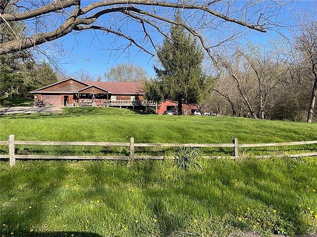 Ranch home in Mid Buchanan school district on 34.49 acres (mol). approx 40X60 metal outbuilding with walk in sliding doors which open west and east, vaulted ceiling, previously 8 horse stalls, gravel floor, plus lean to 15X40, pond, creek, heavily wooded, partially fenced, attached upper & lower garage, wrap around deck, brick patio, vaulted ceiling, fireplace with insert, workshop, black top road. Property is divided by the road plus extra parcel. Home, outbuilding & pond on one side: creek on the other side. Lots of timber. Property needs tlc & is sold as is.
