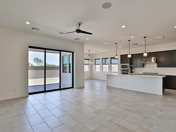 NEW BUILD! Be the FIRST to call this house your home. Situated in the new community of Tapestry in NE Mesa, with a multitude of upgrades including gorgeous tile (set in the basketweave style) in all high traffic and living areas, brand new neutral carpeting in each bedroom, neutral paint throughout, smooth walls (Santa Fe), 3 BEAUTIFUL BRICK ACCENT WALLS, 10 Ft ceilings, upgraded doors, window blinds, upgraded roller shades in all the right places, and upgraded ceiling fans and recessed lighting in every room. Beautiful kitchen features quartz countertops, large island, walk-in pantry, all new Kitchen Aide appliances: gas stove top, built-in oven and microwave combination, dishwasher and a refrigerator with water & ice. Pre-wired for 4 speakers. The primary suite has large walk-in closet, double sink vanity, separate laundry room, three car TANDEM garage offers plenty of storage and parking. Contemporary, modern multi-panel sliding glass door that opens to the private covered patio, easy maintenance front and back yards. (Landscaping in progress) Views of the Superstition Mountains. Smart garage door, smart thermostats, Smart front door, mesh wifi. Available for immediate move in. No Cats, no dog over 25 lbs considered. Application fee $60 for first 2 adults. Refundable deposit and $200 lease processing fee due at lease signing. SJFowler uses Petscreening.com. This property allows self guided viewing without an appointment. Contact for details.