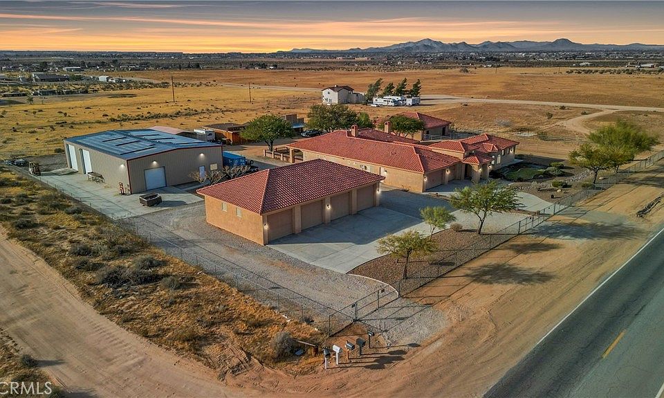 ***Come take a look at this SPRAWLING ESTATE Style Home, located in the highly Sought after Location of Apple Valley**This one is sure not to disappoint! Starting with the endless possibilities that this Large FENCED LOT & more than Generous Garage Space has to offer, it is the Ultimate space for Hobbyist, perfect for RV/Boat Parking and has SOLAR with full utilities**The Larger 4000 SF Metal garage has a kitchen & full bathroom with 6 roll up doors, the front stick-built garage is fully finished, 5 doors and has an office***As if these OVER-SIZED Garages were not enough there are 2 containers with carport/RV parking, 3 storage sheds and a STUNNING BARN**This barn is sure to provide the most Luxury Living for any animal, w/4 interior stalls, a tack room, feed room all built out of block w/full power and water**Additional stalls, shelter and training arena**The Double-Door Entry leading to the Main House & Guest House will walk you thru a COURT YARD, that is truly a PRIVATE OASIS with an inground pool and entertaining space**The POOL area is fenced has a waterfall & firepit**The Guest Suite is a self-contained space for any visitor, featuring a bedroom, WALK-IN Closet & Shower, separate soaking tub, kitchen area and living room**The Main House has an OPEN-CONCEPT Living Area, Separate, family/living room, spacious bedrooms w/Stain grade doors and finishes through-out, 3-fireplaces, WET BAR, The list goes on and on!!