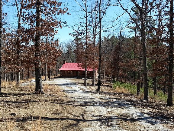 Log sided cabin on 10 acres adjoining the National Forest. Located about halfway between Blanchard Springs Caverns and the White River. The 2 bedroom/1 bath cabin is approx. 1120 sq. ft. with an open concept living room and kitchen/dining area. It offers CH/A, a woodburning fireplace and kitchen island. Stainless steel refrigerator and new dishwasher included. The wooded property has lots of highway frontage and joins the forestry land. The cabin has easy access from the paved road yet sets far enough back to offer privacy. The floors are hardwood and the walls are pine plank for that desired rustic look. Sit on your screened-in back porch and watch the deer and turkey as they roam around the yard or take a hike through the forest land. Some furniture included. This property would make a great nightly rental investment. Well water and septic. 2012 Taxes - $786.48FEATURES:*Woodburning fireplace*Hardwood floors*Rustic interior floors, ceiling and walls*Island kitchen*Laundry area*Circular drive*Red metal roof*Abundant deer and turkey*Gated driveway*10 minutes to world class trout fishing*Horseback riding stables nearby*Restaurants/dining/shopping just minutes away