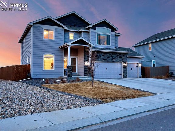 This amazing home is it ALL! Built in an amazing community, this home features 4 bedrooms, 4 bathrooms, a finished basement, tons of storage and has an amazing view of Pikes Peak with no backyard neighbors! When you enter the home, you will find an office with French doors that could also be used for many other purposes such as a workout room, separate dining, play room, etc.! Through the office, there is a butlers pantry which features quartz counters and extra cabinets. Great for storage! The kitchen is just incredible! Beautiful quartz counters, a plethora of cabinet space coupled with beautiful LVP floors makes it a great combination! The kitchen also features a gas range, upgraded refrigerator, and a large pantry. The living room has a stone gas fireplace as well as an extra alcove area for many different uses. Upstairs, you will find 3 spacious bedrooms, a loft and the laundry room with cabinets and a countertop perfect for folding or ironing! The loft can be used as a play area, office, workout area and much more! The master bedroom has a lot of space and the master bathroom is breathtaking. There is an enormous, upgraded shower, double vanity with quartz counters, tons of cabinets, and a linen closet. The walk in closet is also very spacious. The basement is finished and comes with the pool table! There is also a 4th bedroom and full bath in the basement along with a HUGE storage room that can also be converted in a large 5th bedroom. The backyard area is perfect for entertaining. There is a composite deck that houses the amazing hot tub along with room for a grill and dining set. The backyard is xeriscaped with rocks and TURF so save money on those water bills! There is also a perfect view of Pikes Peak and NO BACK NEIGHBORS! Enjoy nights in the hot tub while admiring the picturesque mountains. This home is truly one of a kind. Do not miss this one!