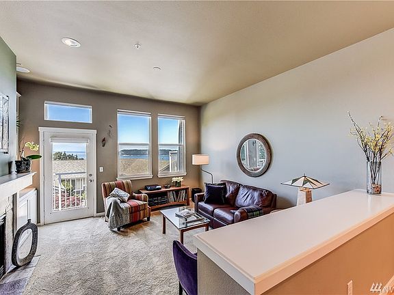 Beautiful Mtn & Sound view home. Graced with light, open floor plan and high ceilings throughout. Living room has gas Frpl, built in cabinetry & balcony for those breathtaking sunsets. Separate dining and brkfst bar adjoin kitchen w/granite counters, stainless steel appl & private garden patio. Master boasts cathedral ceilings, en suite bath & double closets. 2nd bdrm w/walk in closet, full bath. Enjoy nearby dining, library, golf, Boeing, Ferry & more. 2 car gar. Coveted Nborhood & well run HOA