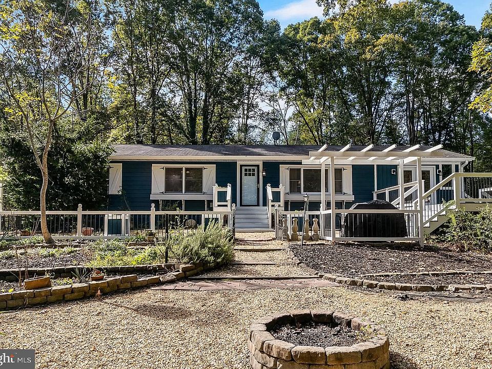 Beautiful Rambler situated on 1 acre with landscaped garden areas and pathways connecting to home. Main level has 3 bedrooms, 1 bath, kitchen, living room and lovely sunroom which would make an amazing office with all the windows and bright light. This unique home also features two kitchens, two washer/dryer connections which is great for multi-generation families. Basement has kitchen area, living space, full bath and plenty of extra storage with its own private entrance. Bonus: 672 square foot finished studio/office/building has 200-amp electrical service and Daiken mini-spilt heat pump which could be used for a business, gym, studio or additional living quarters. Parquet floors and luxury vinyl plank on main level. Enjoy the outdoors on large deck/patio area or in the greenhouse perfecting your vegetable/herb garden. Hot tub, sauna and above-ground pool all convey. NO HOA - tucked away on private road