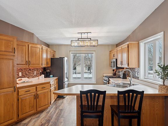 This meticulously maintained & beautifully updated home offers a perfect blend of comfort, convenience & location. Nestled in desirable Ponds of Olde Towne Neighborhood, backs up to the scenic Ojeketa Park Reserve & is just steps from Chisago Chain of Lakes. Enjoy nearby parks, trails, & lakes, rent a dock space for your boat—this property provides an unbeatable lifestyle w/breathtaking views. The open floorplan features vaulted & beamed ceilings in the spacious Living Room, providing a stunning view of the private backyard park reserve. The gourmet Kitchen is newly equipped w/stainless steel appliances, ample counter & cabinet space & under-cabinet lighting! The informal dining area opens to a custom-built, covered deck featuring maint-free railings w/amazing private backyard views. There are two upper-level bedrooms & a newly remodeled, tiled full bathroom w/a luxurious soaking tub. The lower level offers two additional bedrooms, & a newly remodeled bathroom w/tiled shower & heated floors! You will love the Lower-Level custom wet bar w/a separate refrigerator, ample seating, & the ideal space for hosting gatherings. There is $60K in recent upgrades, incl. a new roof, remodeled bathrooms w/beautiful tilework & heated floors, a concrete driveway w/an additional parking pad, new stainless steel kitchen appliances & washer & dryer. This home is truly a gem & a rare find in this neighborhood. 4.25% assumable mortgage!