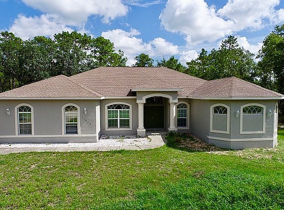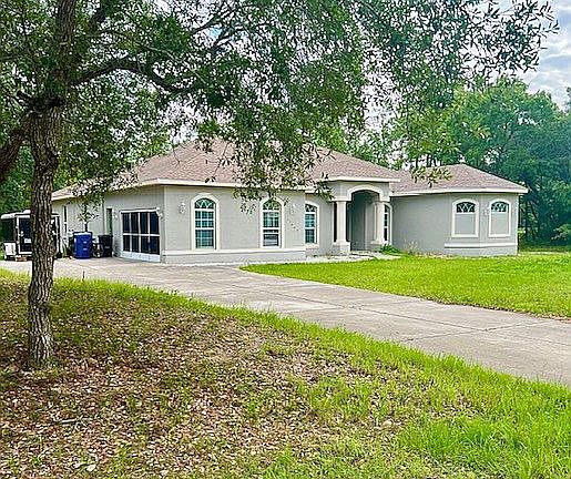 This fully custom freshly painted 3/2/2 home with bonus flex space that can be used as an office sits on over an ACRE of land. NO HOA or deed restrictions .Upon entering the foyer you are greeted by a large and spacious great room with soaring tray ceilings and custom accents. Keep warm on cold nights with a beautiful fireplace. Enjoy an open floor plan with a custom kitchen that has granite countertops with plenty of storage , gas stove and a walk in pantry. Your children or guests will enjoy their separate living quarters with a split floor plan, giving ultimate privacy for you and your family. Feel grand when you enter your master suite that features a large walk-in in closet, sitting room and a private exit from French doors that lead to a large under roof lanai. Enjoy ultimate luxury in your beautiful master bath that has a wrap around shower and jetted bathtub with granite countertops. Spacious bedrooms with ceiling fans. Large inside laundry room. Private well water.Large fenced in side area for dogs or kids playhouse. Great location minutes from highways but still secluded in your own slice of paradise. Won’t last long. BUYER REALTORS WE ARE OFFERING 2% COMMISSION