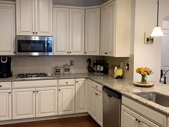 This home features a gourmet kitchen with Hazelnut cabinets, SS appliances with double wall ovens, plus gas cooktop, plus a built in dining room hutch. Upgraded flooring throughout the main level floors. Downstairs master bedroom. Upstairs has a spacious loft overlooking the 2 story great room, two bedrooms upstairs, plus a walk in storage room. All bedrooms have walk in closets. Back area is fenced completely in. Townhouse comes with a frig. Maintenance of yard is included in rent, and pool is available in neighborhood community center. Tenant pays for utilities.