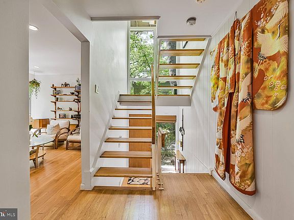This exceptionally rare mid-century modern contemporary boasts amazing tree-top views over the scenic wooded valley while enjoying abundant natural light at every turn. The residence's renovated floor plan is wonderfully expansive with generously sized rooms for today's lifestyle. There are four beautifully spacious bedrooms upstairs for the perfect combination of comfort and style. The main level is open, airy and perfect for entertaining! Enjoy the expansive lower level with a recreation room or a highly desirable office space featuring a wall of windows with wooded views, a potential additional bedroom (bedroom #5), and a cavernous storage area! Enjoy the enchanting deck & patio for the best of indoor & outdoor living!Four to six off-street private parking spots. The property is so close & convenient to the newly renovated Cabin John Mall. There's endless year-round enjoyment for everyone at Cabin John Regional Park. The location is also within the award-winning Winston Churchill High School Cluster. Voluntary neighborhood civic association at $125/ year.